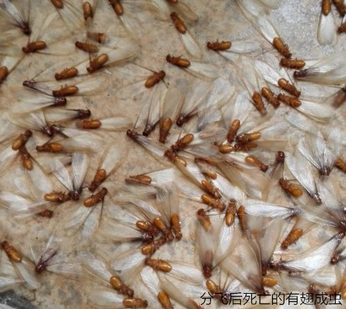 或有翅型:體軀骨化,黃、褐或黑色,有兩對(duì)發(fā)達(dá)的翅。每年4-6月是其分飛高峰期,特別是在春夏雨后悶熱時(shí),大量長(zhǎng)翅繁殖蟻從蟻巢中飛出,在離巢不遠(yuǎn)處的建筑物附近低飛,飛行時(shí)間很短,這種現(xiàn)象稱為婚飛或群飛(分群)。群蟻在低空飛舞,好像在開舞會(huì),各自毫無(wú)拘束地自由選擇對(duì)象。"情投意合者"飛落地面,各自脫掉翅膀,雌雄成雙追逐,通常為雌前雄后,完成"婚配"大事。配對(duì)后的雌雄成蟲經(jīng)一段時(shí)間后,便開始尋找合適場(chǎng)所,建筑新巢"定居"。入穴后,雄蟲常用口器舔舐雌蟲的腹部,有時(shí)雌雄蟲彼此舔舐,然后產(chǎn)卵,繁殖后代,另立新的群體。這對(duì)"新婚"的雌雄蟻,就是未來(lái)新群體的母蟻和父蟻,也就是新群體中的蟻后和蟻王。大多情況下,這對(duì)伴侶終身過(guò)著"一夫一妻制"的文明社會(huì)生活。但不是婚飛中的所有個(gè)體都能成雙建立新群,當(dāng)它們大量飛出時(shí),常被各種鳥類、捕食性昆蟲或其他動(dòng)物吃掉,往往只有其中的少數(shù)能夠幸存下來(lái),但盡管是少數(shù),也足以維持其種族繁衍,并造成對(duì)木質(zhì)建筑物的危害的了,王后躺在王室中可是專門"生育"的,到一定時(shí)期又有成蟲出飛建立新的群體。